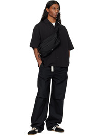 Peached cotton twill trousers. · Water-repellent · Integrated cinch belt at partially elasticized waistband · Four-pocket styling · Zip fly · Pleat at knees · Drawstring at inner cuffs · Logo embroidered at back Supplier color: Dark navy 100% cotton. Made in Italy 251249M191020
