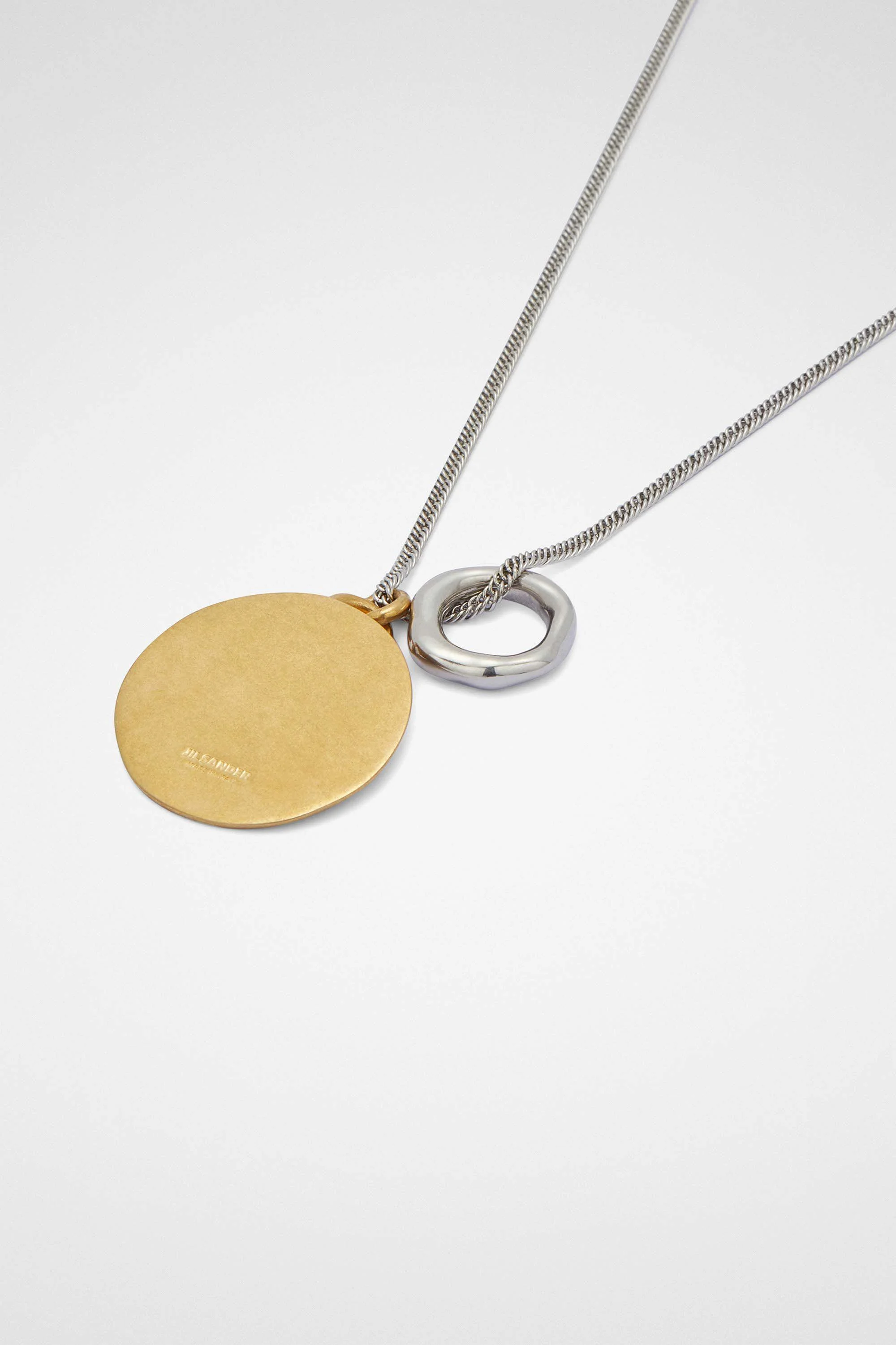 Handcrafted brass necklace with metal round pendant tag Details - adjustable metal chain - t-closure - metal round pendant tag in contrasting colour - irregular-shaped ring pendant - engraved Jil Sander logo - nickel tested - antioxidant treatment - 100% brass - made in Italy - StyleID: J30UU0036P4877719