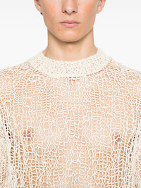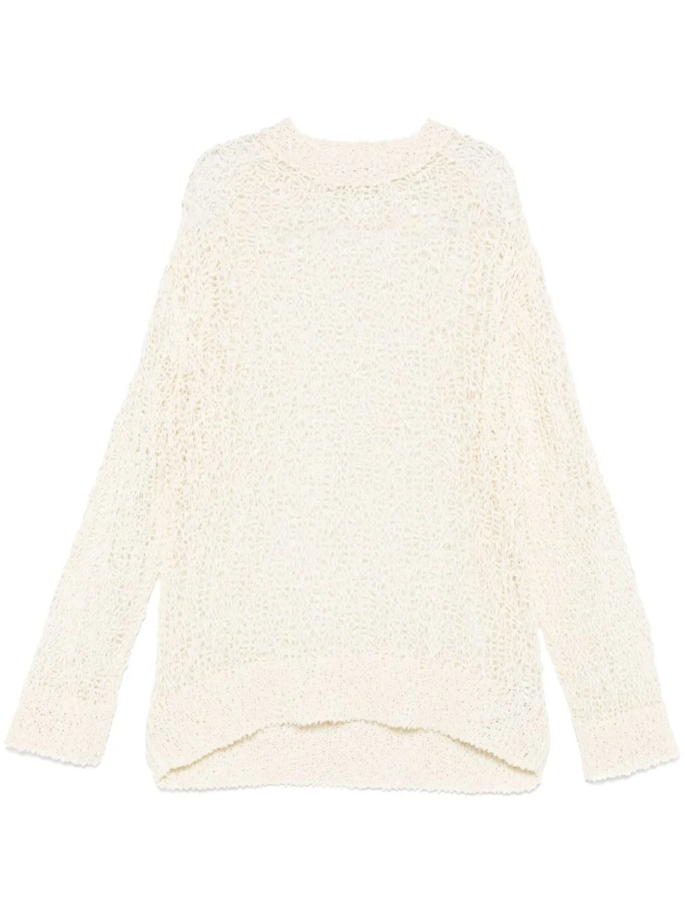 open-knit sweater Highlights - Ecru - Crew neck - Drop shoulder - Long sleeves Made in Italy Composition Cotton 100% SIZE & FIT Model measurements Height 6 ft 2 in(1.87 m) Bust/Chest 38.97 in(99 cm) Hips 37.99 in(96.5 cm) Waist 29.52 in(75 cm) FittingInformation Designed to be unstructured, offering a loose fit throughout Made with a lightweight knit, this piece offers some stretch