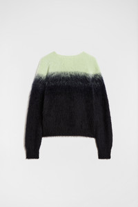 Long-sleeved brushed wool mohair jacquard sweater Details - regular fit - ribbed neck, hem and cuffs - brushed wool mohair jacquard - 67% mohair 5% wool 28% polyamide-nylon - made in Italy - StyleID: J21GP0178J14817093 Care - dry clean only - iron with care Fit - model is 187cm/6'1" and is wearing a size 48 IT - Please note that the physical label of the item will show the Italian size