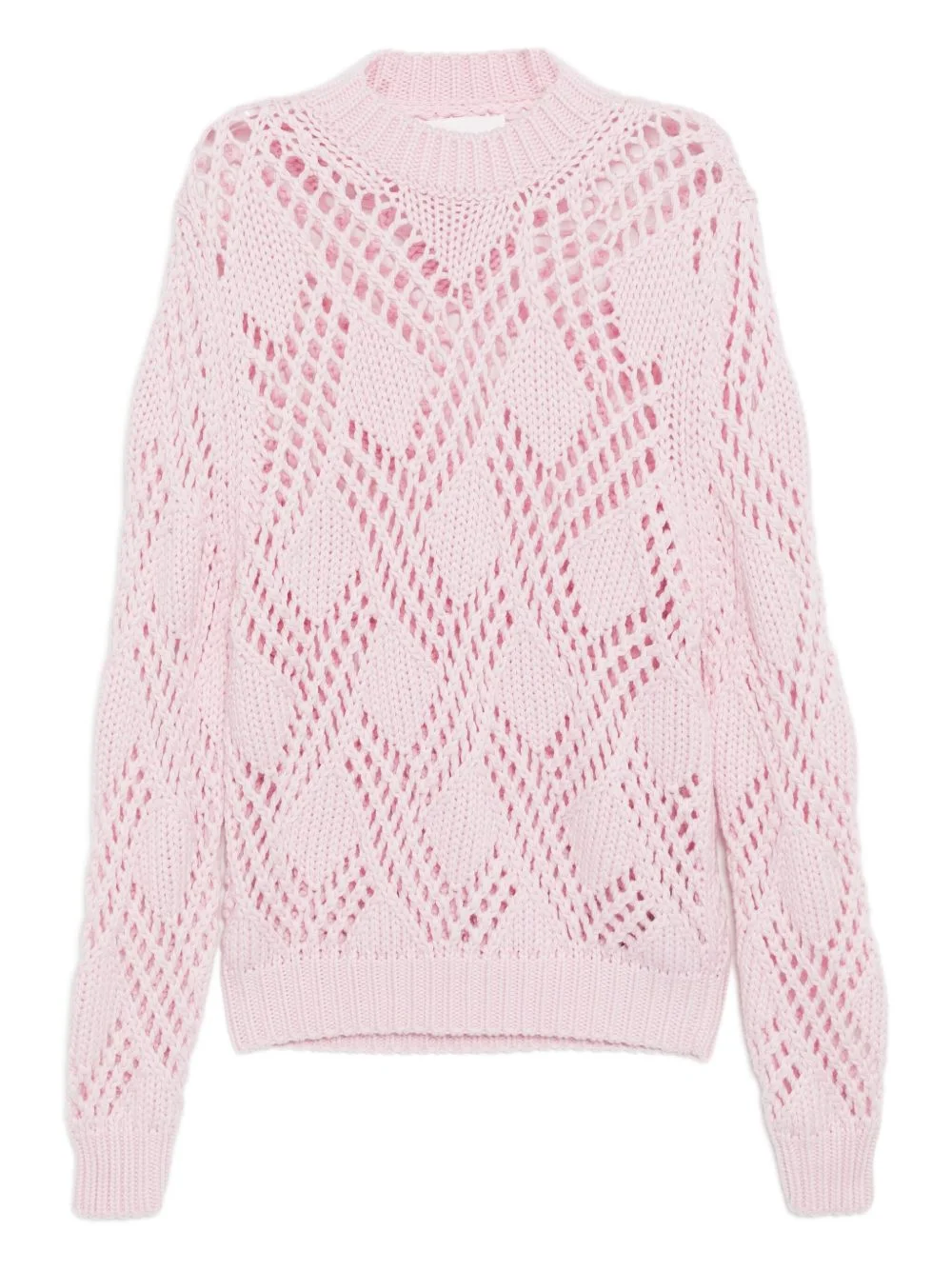 open knit sweater Highlights - Pink - Open knit - Long sleeves Made in Italy Composition Virgin Wool 100% SIZE & FIT Model measurements Height 6 ft 1 in(1.86 m) Bust/Chest 35.03 in(89 cm) Hips 36.61 in(93 cm) Waist 29.52 in(75 cm) FittingInformation Designed for a regular fit, offering a comfortable loose fit throughout the body The ribbed hem offers a close, comfortable fit Made with a midweight knit, this piece offers some stretch Washing instructions Dry Clean Only