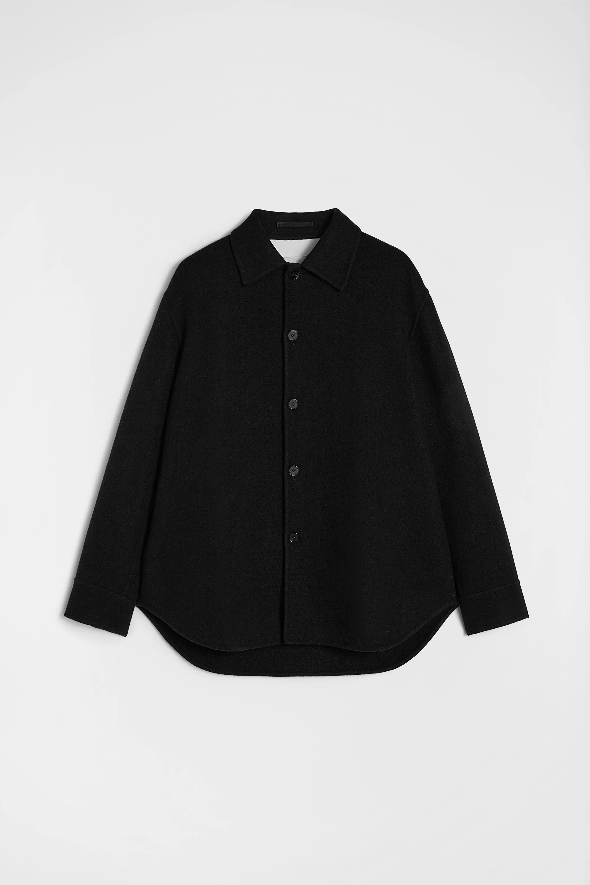 Long-sleeved felted virgin wool outer shirt Details - relaxed fit and boxy shape - flat collar with top button - front button closure - 100% virgin wool - made in Italy - StyleID: J23BN0006J40020001 Care - dry clean only - iron with care Fit - model is 187cm/6'1" and is wearing a size 48 IT - Please note that the physical label of the item will show the Italian size