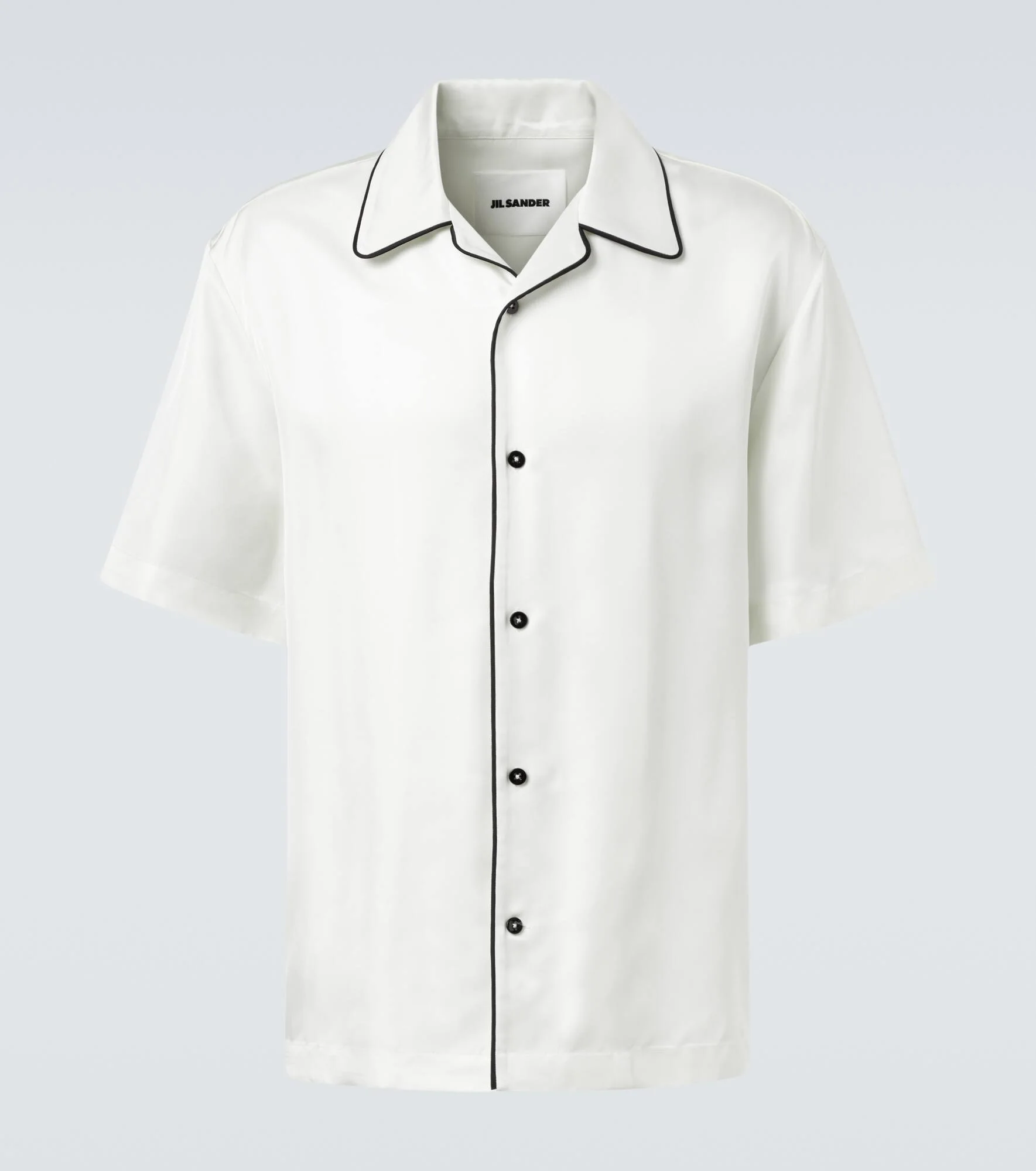 Jil Sander's sophisticated minimalism is characterized by neutral tones, clean lines, and precisely-placed details. This bowling shirt is cut to an oversized, sleek silhouette and features contrasting piping along the trims. Product Details - Material: 100% viscose - Care instructions: dry clean - Made in Italy - Designer color name: Lemon Green - Item color: green - Contains non-textile parts of animal origin - Closure: buttoned front - Sleeves: short-sleeved - Item number: P01043344 Size & Fit - True to size - Dropped shoulders - Oversized - Non-stretchy fabric - Falls below the hip - Height of model is 188cm-74" and wears a size IT 50
