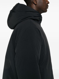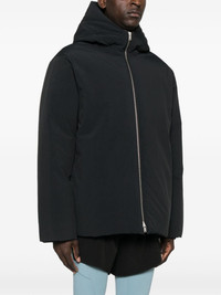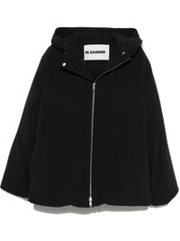 padded jacket Highlights - Black - Textured finish - Padded design - Front two-way zip fastening - Classic hood - Long sleeves - Two side inset pockets - Quilted lining - Straight hem Made in Italy Composition Lining: Polyester 100%, Cotton 100%, Goose Down 85%, Goose Feather 15% Outer: Polyester 100% SIZE & FIT Model measurements Height 6 ft 2 in(1.87 m) Bust/Chest 36.41 in(92.5 cm) Hips 37 in(94 cm) Waist 29.52 in(75 cm) Measurement CHEST 53.54 in(136 cm) LENGTH 29.52 in(75 cm) WAIST 52.75 in(134 cm) SLEEVE LENGTH 26.57 in(67.5 cm) FittingInformation Designed to be unstructured, offering a loose fit throughout The internal drawstring at the hem allows for fitted preferences Made from a padded non-stretch fabric, giving it no natural elasticity