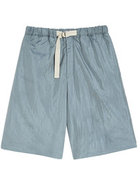 padded shorts Highlights - Grey - Padded design - Front buckle fastening - Elasticated waistband - Mini logo tag - Two rear patch pockets - Straight hem - Knee-length Made in Italy Composition Polyamide 64%, Silk 36% SIZE & FIT FittingInformation Designed with a wide leg, offering a loose and roomy fit The elasticated waist allows for a comfortable fit Made from a padded non-stretch fabric, giving it no natural elasticity