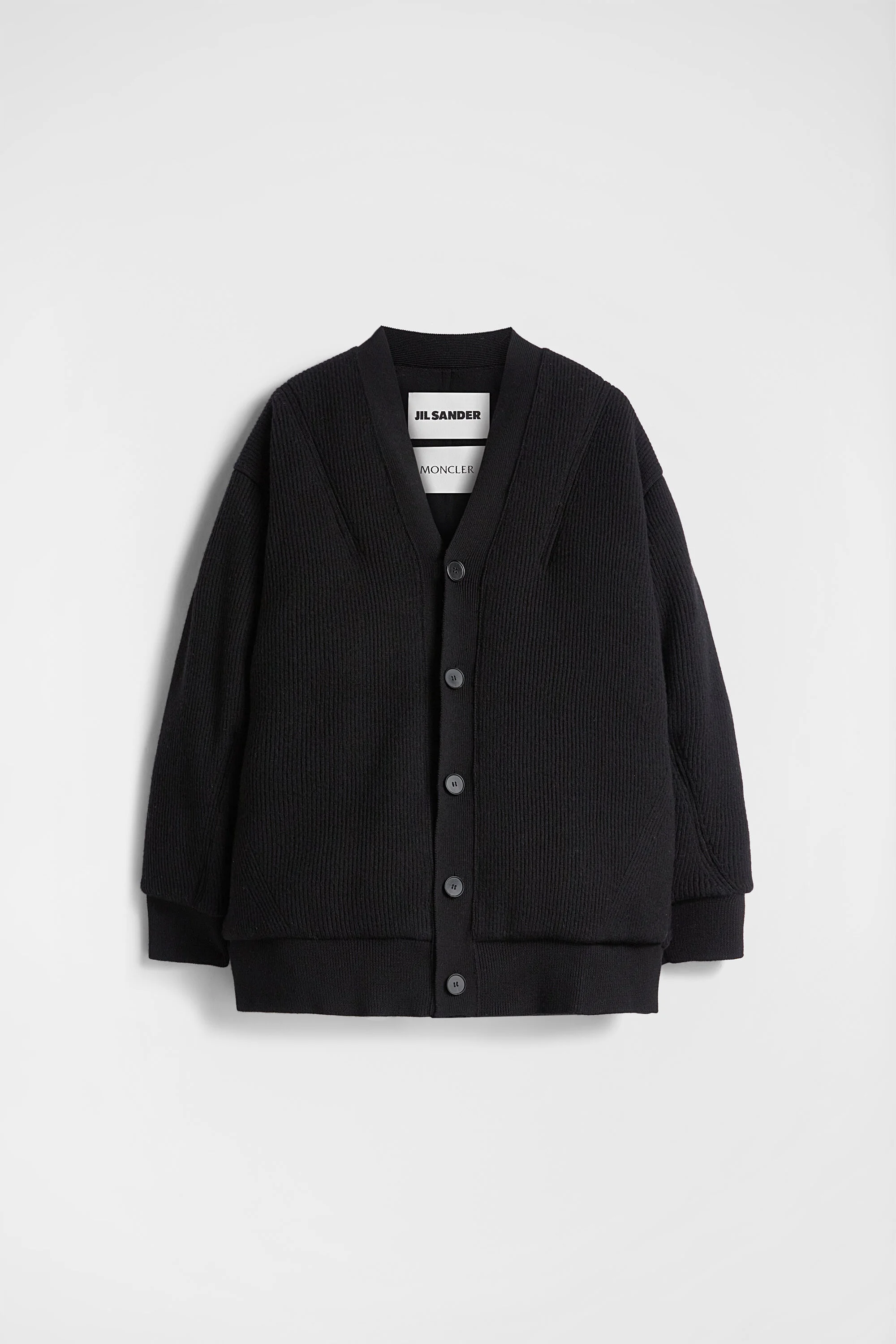 Linear on the outside, protective within, the Moncler + JIL SANDER down-filled wool cardigan for men is a dialogue between form and function Details - regular fit - crafted from felted wool - down-filled - English rib knit - gauge 7 - v-neck - button closure - detachable metal logo pin - made in Romania - StyleID: J54AF0005J40350001 Care - dry clean only - iron with care Fit - model is 187cm/6'1" and is wearing a size M. For further information about sizing we invite you to contact our Customer Service - Please note that the physical label of the item will show the international size