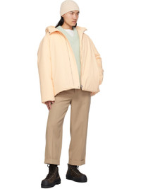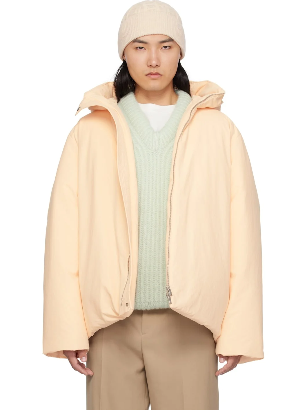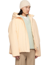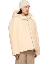 Recycled down-filled recycled polyester taffeta jacket. Water-repellent. · Press-stud fastening at hood · Two-way zip closure · Seam pockets · Concealed bungee-style drawstring at hem · Patch pockets at interior · Quilted polyester lining Supplier color: English rose Fill: 85% recycled goose down, 15% goose feather.