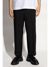 pleated trousers Highlights - Black - Crease effect - Buckle fastening - Straight leg - Hook and zip fly fastening - Slip pockets to the sides Made in Italy Composition Polyester 100%