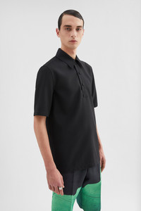 Short-sleeved wool canvas shirt with polo collar and front placket with three buttons Details - regular fit - flat pointed collar - centre-front button closure - classic yoke - straight hem - viscose lining - 100% virgin wool - made in Italy - StyleID: J21DL0223J40224001 Care - dry clean only - iron with care Fit - model is 187cm/6'1" and is wearing a size 48 IT - Please note that the physical label of the item will show the Italian size