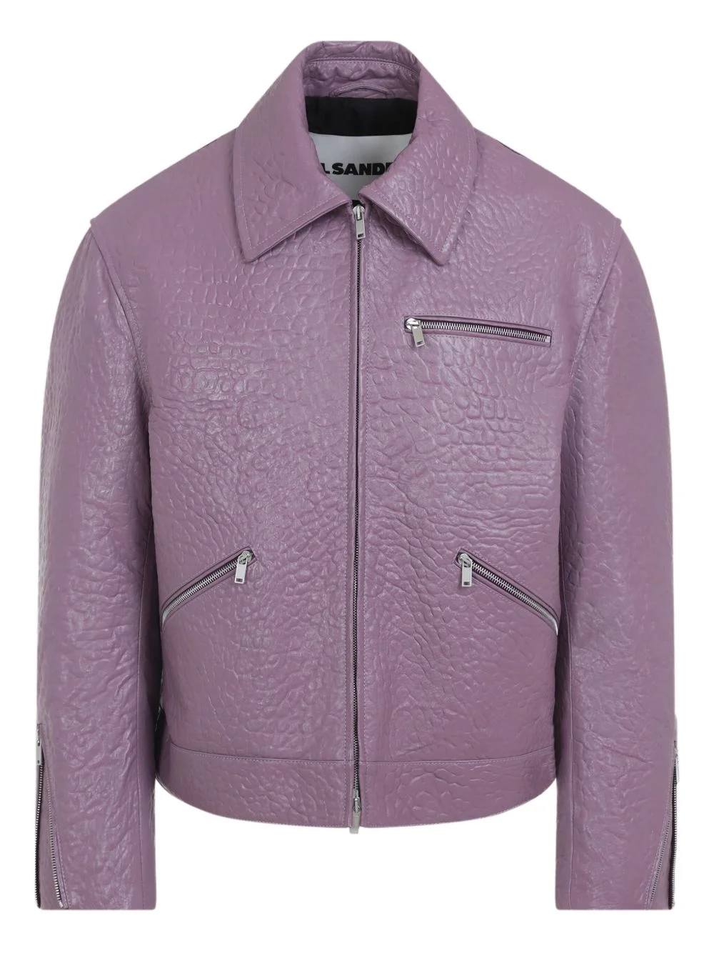 textured zip-fastening leather jacket Highlights - Purple - Leather - Zip fastening - Notched collar Made in Italy Composition Sheepskin 100% Washing instructions Read Manufacturer Guidelines