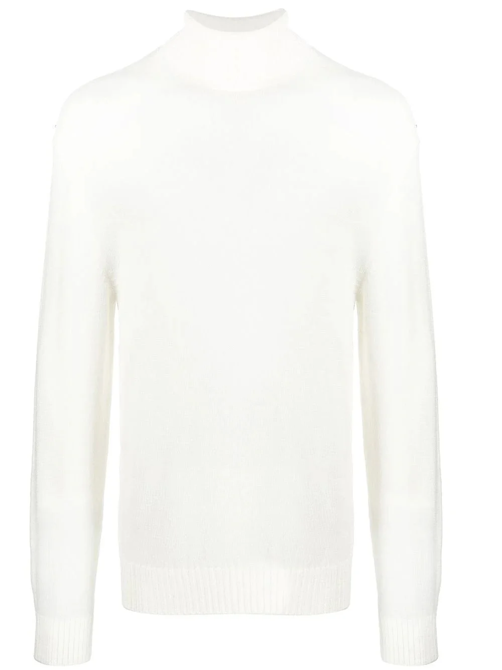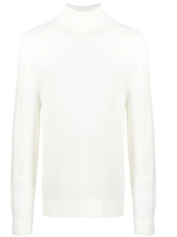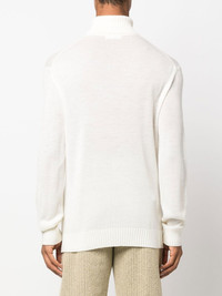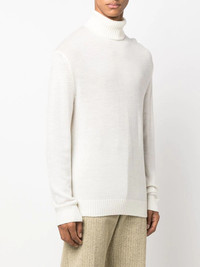 roll neck knitted sweater off-white wool fine knit roll neck long sleeves ribbed hem Made in Italy Composition Wool 100% SIZE & FIT Model measurements Height 6 ft 2 in(1.87 m) Bust/Chest 38.18 in(97 cm) Hips 36.61 in(93 cm) Waist 29.13 in(74 cm) FittingInformation Designed for a regular fit, offering a comfortable loose fit throughout the body Made with a midweight knit, this piece offers some stretch This piece fits true to size – take your usual size