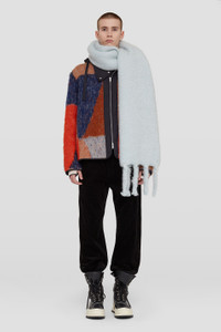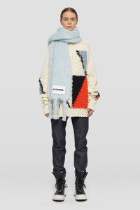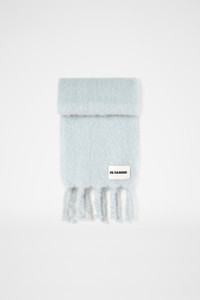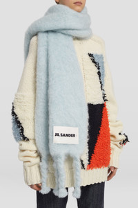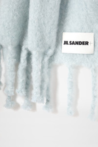 Long wool and mohair artisanal scarf with Jil Sander+ logo label stitched at bottom Details - fringed hem detail - Jil Sander+ logo label stitched at bottom - 73% mohair, 24% wool, 3% polyamide - made in Spain - style ID: JPPT902020-WT199000 Care - dry clean only Size and measurements - length : 180cm/70.9" - width : 40cm/15.7"