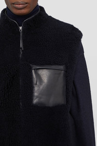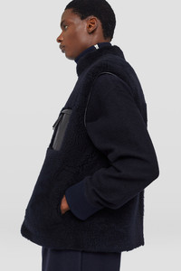 Shearling and leather vest with embossed Jil Sander+ logo Details - boxy fit - front-zip closure - leather zipped pocket on side - Jil Sander+ blind embossed logo on leather pocket - lamb fur,lining 100% cotton - made in Italy - StyleID: J47FB0107J07113401 Care - dry clean only Details - model is 187cm/6'1" and is wearing a size 46 IT