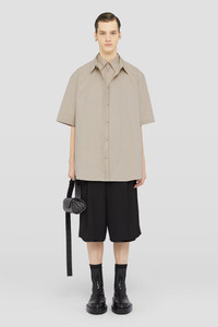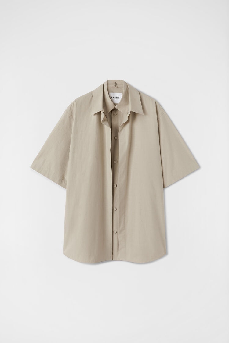 Short-sleeved cotton poplin shirt with double front layer design and detachable jewel clip at back Details - oversized and long fit - dropped shoulders - pointed collar with one-button collarstand - classic yoke - double front layer and double collar design - back detachable jewel clip detail with engraved Jil Sander logo - cotton poplin - 100% cotton - made in Italy - StyleID: J21DL0171J45248052 Care - dry clean only - iron with care Details - model is 187cm/6'1" and is wearing a collar size 40