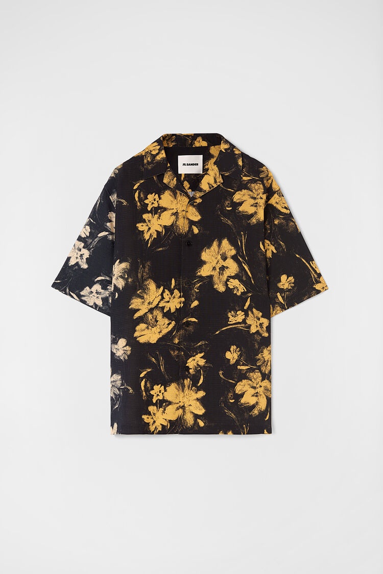 Relaxed-fit short-sleeved shirt with flower embroidery Details - relaxed fit - classic yoke and bowling collar - flower motif embroidering on chest - button closure - painted bleached flower - primary fabric: 100% viscose-rayon, lining: 100% cotton - StyleID: J61DL0003J65160087