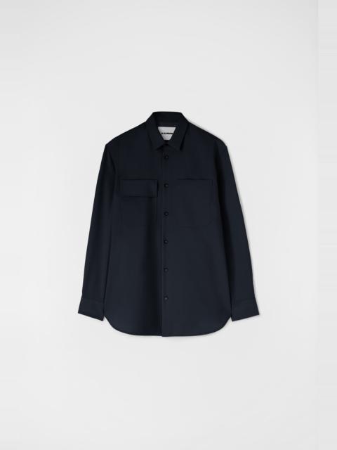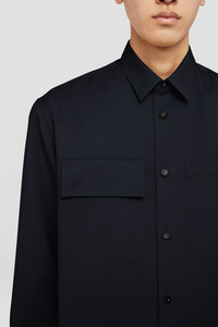 Long-sleeved gabardine wool shirt Details - relaxed fit - pointed collar with one-button collar stand - front button closure - patch pockets on front - curved hem - fine wool gabardine - 100% wool - made in Italy - StyleID: J23DL0003J40159401 Care - dry clean only - iron with care Fit - model is 188cm/6'2" and is wearing a collar size 40