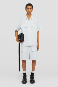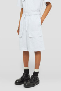 Relaxed-fit striped cotton shorts with large patch pockets Details - relaxed fit and dropped crotch - elasticated waistband with visible drawstring - button closure - in-seam pockets - back welt pockets - two large patch pockets with flaps - striped cotton - 100% cotton - made in Italy - StyleID: J61KA0026J45264124 Care - dry clean only - iron with care Details - model is 187cm/6'1" and is wearing a size 46 IT - Please note that the physical label of the item will show the Italian size