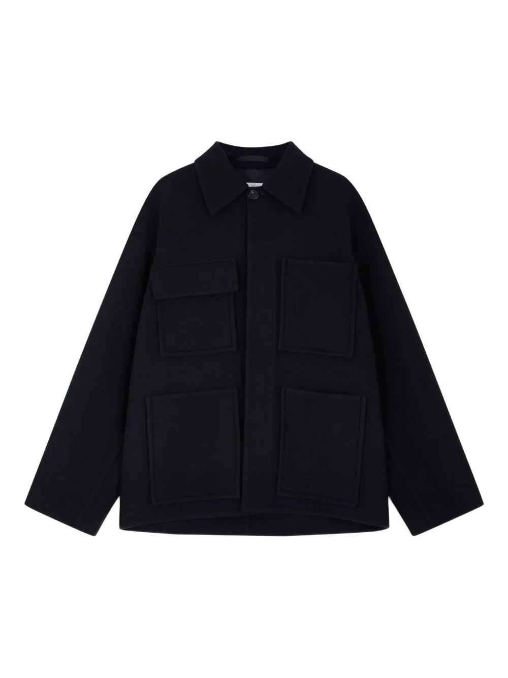 single-breasted coat Highlights - Navy blue - Four patch pockets - Classic collar - Front button fastening Imported Composition Wool 100% Lining: Viscose 100% Washing instructions Read Manufacturer Guidelines