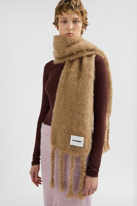 Long knitted mohair scarf with printed Jil Sander+ logo Details - fringed hem detail - Jil Sander+ logo label stitched at bottom - 73% mohair 24% wool 3% polyamide - made in Spain - StyleID: J47TE0122J40041264 Care - dry clean only - iron with care