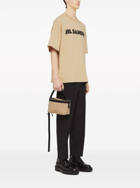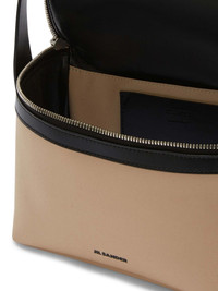 small leather shoulder bag Famed for their minimalist vision, Jil Sander presents this shoulder bag in a black and light brown colour scheme. Crafted from leather, its design emphasises the simplicity and timelessness of the brand. Highlights - Light brown - Black - Calf leather - Cotton - Logo print to the front - Adjustable shoulder strap - Front zip fastening - Main compartment Made in Italy Composition Outer: Calf Leather 100%, Cotton 100% Lining: Sheepskin 100%
