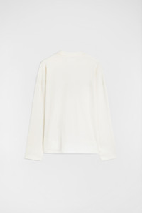 Stiff cotton jersey t-shirt with Jil Sander printed logo Details - oversized and long fit - dropped shoulders - long sleeves - ribbed crew neck - Jil Sander printed logo on front - thick, stiff cotton jersey - 100% cotton - made in Italy - StyleID: J22GC0136J45047102 Care - hand wash Fit - model is 187cm/6'1" and is wearing a size M - Please note that the physical label of the item will show the international size