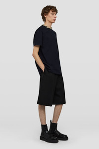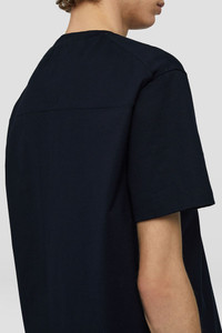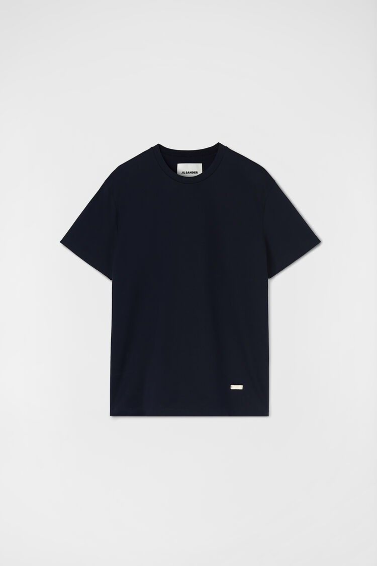 Cotton crew-neck short-sleeved t-shirt with back carré detail and detachable silver Jil Sander logo pin Details - crew neck - carré detail on back - detachable Jil Sander logo pin - primary fabric: 100% cotton - StyleID: J22GC0128J20073402 Details - model is 187cm/6'1" and is wearing a size M