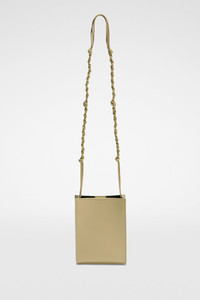 Small-sized leather shoulder and crossbody bag with hand-knotted strap and embossed Jil Sander logo Details - hand-knotted strap - rectangular shape - magnetic button closure - nappa lining - blind embossed Jil Sander logo - 100% calf leather - w 14 cm x h 19 cm x d 5 cm - made in Italy - StyleID: J25WG0003P5995923
