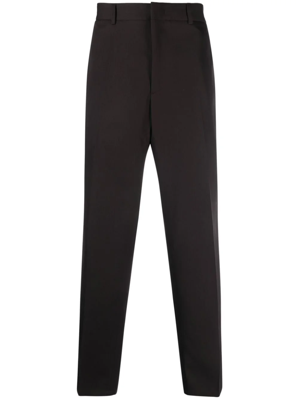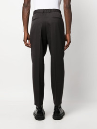 tapered-leg tailored trousers Highlights - Chocolate brown - Virgin wool - Belt loops - Concealed front fastening - Tapered leg - Two side slit pockets - Two rear welt pockets - Ankle-length Made in Italy Composition Lining: Cotton 100% Outer: Virgin Wool 100% SIZE & FIT Model measurements Height 6 ft 2 in(1.88 m) Bust/Chest 36.61 in(93 cm) Hips 35.82 in(91 cm) Waist 27.95 in(71 cm) FittingInformation Designed for a tapered leg, offering a loose unrestricted fit over the leg with a closer fit towards the ankle The partially elasticated waistband offers increased movement and comfort at the waist Made from a midweight non-stretch fabric This piece fits true to size – take your usual size Washing instructions Dry Clean Only