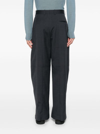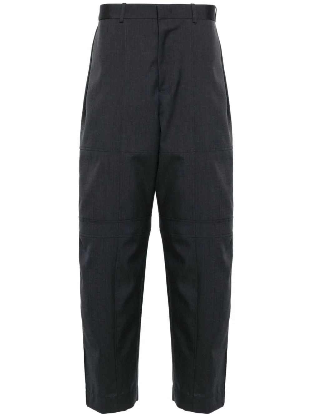 tailored wool trousers Highlights - Dark grey - Wool - Ripstop texture - Seam detailing - Belt loops - Two diagonal pockets to the sides - Pressed crease - Rear welt pocket - Tapered leg - Concealed front button, hook and zip fastening Made in Italy Composition Lining: Cotton 100% Outer: Wool 100% SIZE & FIT Model measurements Height 6 ft 1 in(1.85 m) Bust/Chest 35.82 in(91 cm) Hips 37.79 in(96 cm) Waist 29.13 in(74 cm) FittingInformation Designed for a tapered leg, offering a loose unrestricted fit over the leg with a closer fit towards the ankle Made from a midweight non-stretch fabric This piece fits true to size – take your usual size