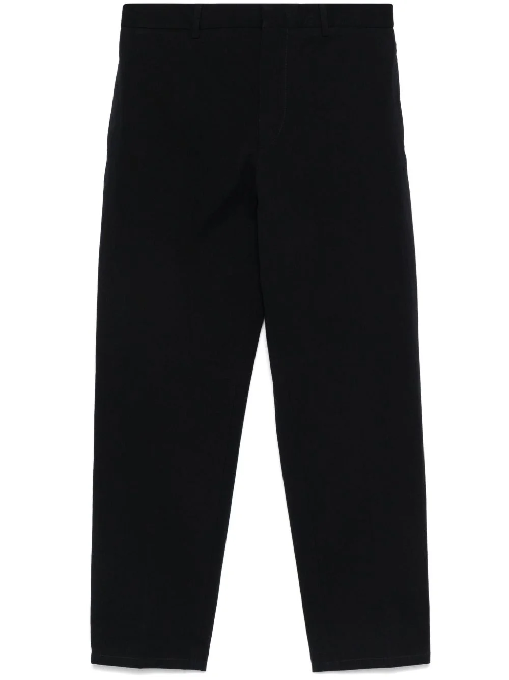 tapered trousers Highlights - Navy blue - Concealed front button, hook and zip fastening - Rear elasticated waistband - Two side inset pockets - Two rear welt pockets Made in Italy Composition Outer: Cotton 100% Lining: Cotton 100% SIZE & FIT Model measurements Height 6 ft 2 in(1.87 m) Bust/Chest 38.18 in(97 cm) Hips 36.61 in(93 cm) Waist 29.13 in(74 cm) FittingInformation Designed for a slim tapered leg, offering a close fit that sits just away from the leg with a closer fit towards the ankle The partially elasticated waistband offers increased movement and comfort at the waist Made from a midweight non-stretch fabric