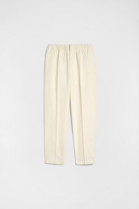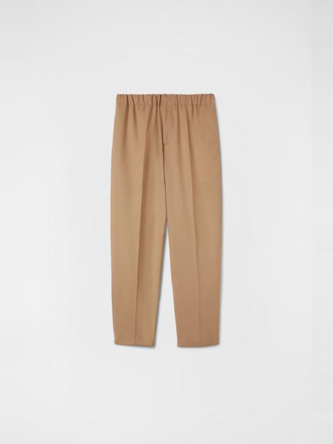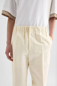 Compact lighweight double cotton trousers with tapered hem and elasticated waistband Details - relaxed fit and cropped leg - zip and button closure - elasticated waistband - two back flap pockets - relaxed crotch and tapered hem - cotton gabardine - 100% cotton - made in Italy - StyleID: J23KA0005J45225109 Care - dry clean only - iron with care Fit - model is 187cm/6'1" and is wearing a size 48 IT - Please note that the physical label of the item will show the Italian size