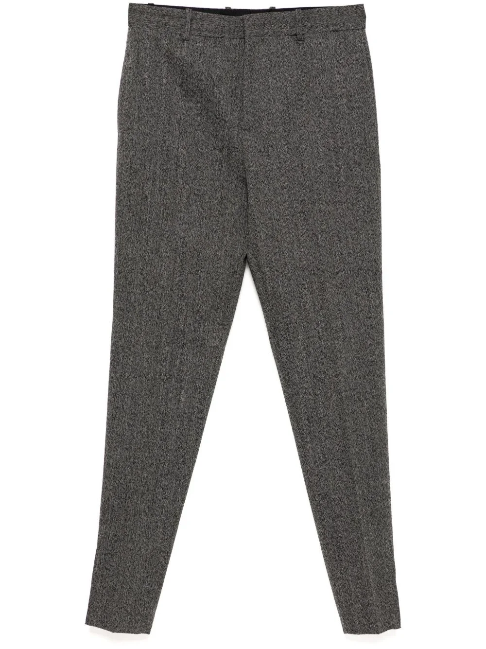 textured wool tailored trousers Highlights - Dark grey - Concealed front button, hook and zip fastening - Belt loops - Two side inset pockets - Two rear welt pockets Made in Italy Composition Wool 100% SIZE & FIT Model measurements Height 5 ft 10 in(1.78 m) Bust/Chest 31.49 in(80 cm) Hips 34.64 in(88 cm) Waist 23.62 in(60 cm) FittingInformation Designed for a slim tapered leg, offering a close fit that sits just away from the leg with a closer fit towards the ankle The zipped hems allow you to adjust the fit throughout the calves and ankles Made from a midweight non-stretch fabric Washing instructions Dry Clean Only