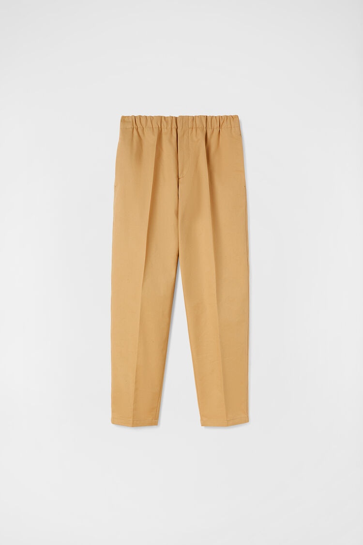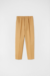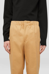 Relaxed-fit flat-fronted trousers with pressed crease Details - relaxed fit - elasticated waist - front button closure - side-seam pockets - back patch pockets - tapered cropped leg with pressed crease - 100% cotton - made in Italy - StyleID: J23KA0005J45167233 Care - dry clean only - iron with care Details - model is 187cm/6'1" and is wearing a size 46 IT - Please note that the physical label of the item will show the Italian size