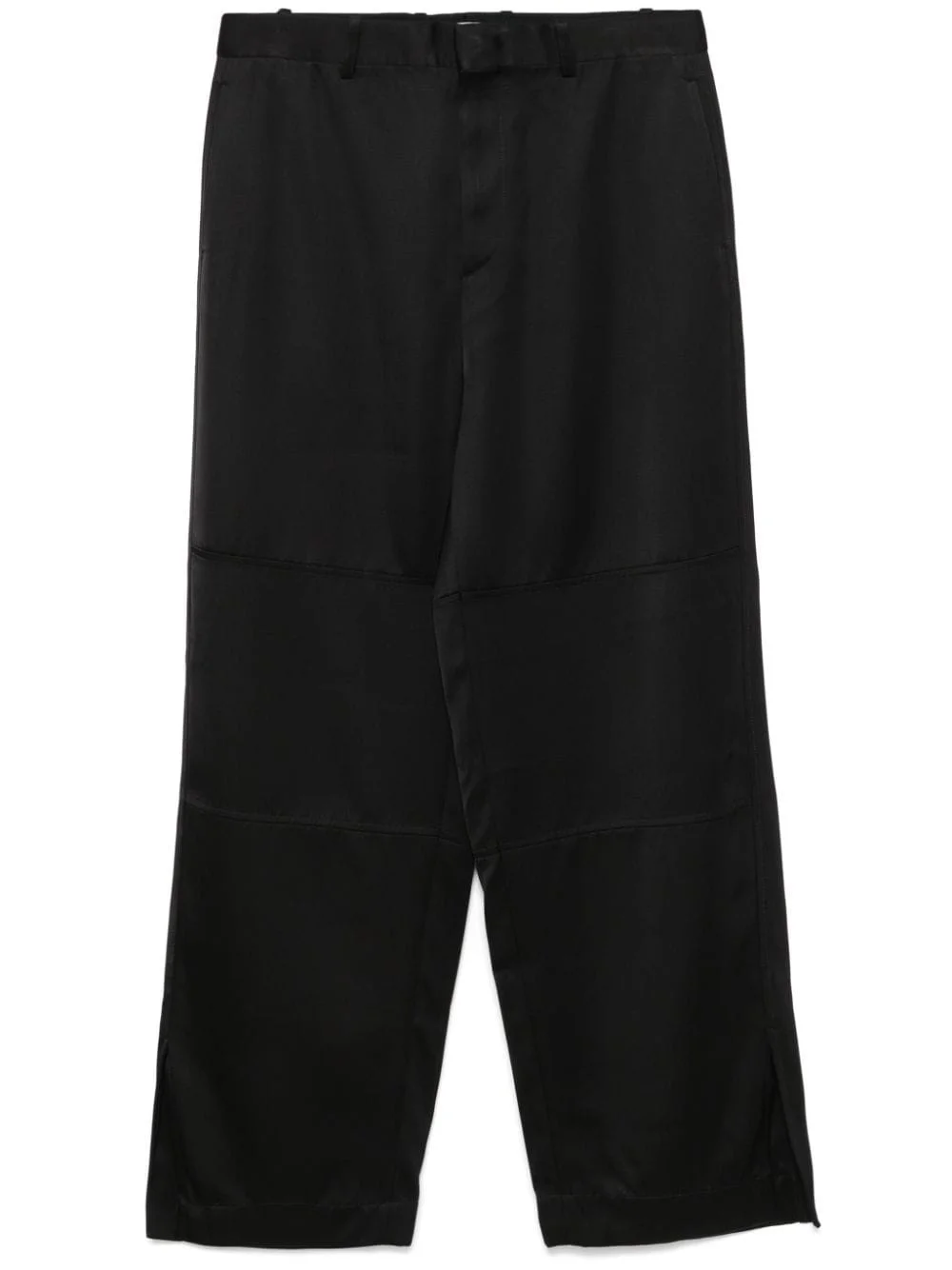 twill trousers Highlights - Black - Twill weave - Panelled design - Concealed front button, hook and zip fastening - Belt loops - Two side inset pockets - Two rear welt pockets - Side slits - Full-length Made in Italy Composition Lining: Viscose 100% Outer: Viscose 83%, Silk 17% SIZE & FIT Model measurements Height 6 ft 2 in(1.87 m) Bust/Chest 38.97 in(99 cm) Hips 37.99 in(96.5 cm) Waist 29.52 in(75 cm) FittingInformation Designed with a wide leg, offering a loose and roomy fit Made from a midweight non-stretch fabric