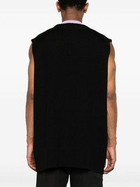 two-tone layered knitted vest Highlights - Black/lilac - Wool blend - Knitted construction - Layered design - Two-tone design - Crew neck - Sleeveless - Straight hem Made in Italy Composition Polyester 100%, Wool 55%, Cotton 35%, Polyamide 10% SIZE & FIT Model measurements Height 6 ft 2 in(1.87 m) Bust/Chest 37 in(94 cm) Hips 33.85 in(86 cm) Waist 27.95 in(71 cm) FittingInformation Designed to be unstructured, offering a loose fit throughout Made from a midweight fabric This piece fits true to size – take your usual size Washing instructions Dry Clean Only