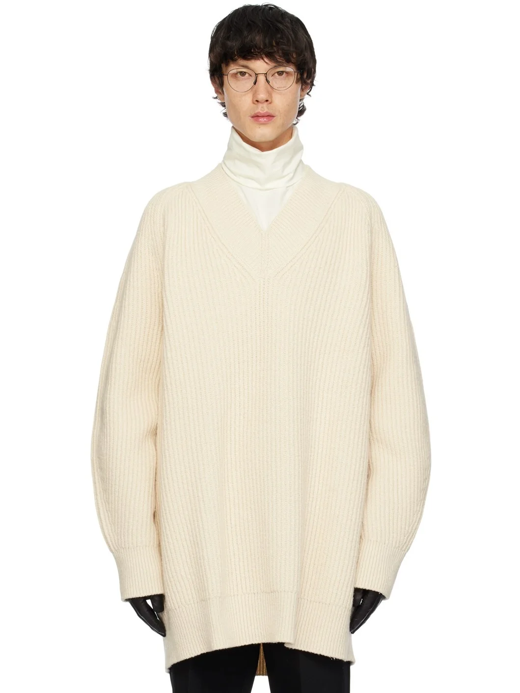 Knit cotton- and wool-blend sweater. · Rib knit V-neck, hem, and cuffs · Raglan sleeves Supplier color: Coconut 56% cotton, 41% wool, 3% polyamide. Made in Italy 241249M206001