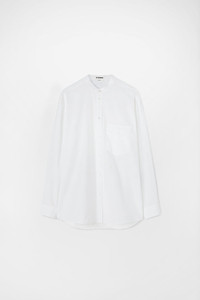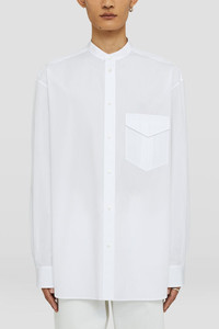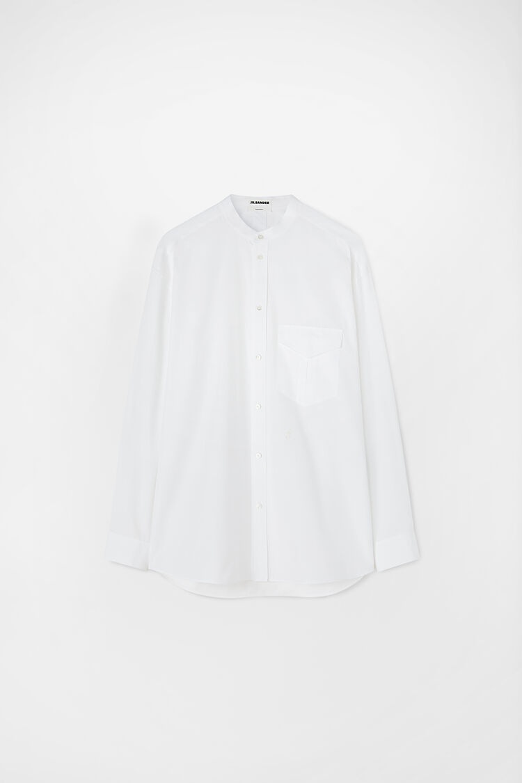 Long-sleeved cotton poplin shirt with box pleat patch pocket and embroidered Jil Sander monogram Details - straight cut and relaxed fit - small stand collar - slightly dropped shoulder - box pleat patch pocket with flap - embroidered Jil Sander monogram - cotton poplin - 100% cotton - made in Italy - StyleID: J24DL0003J45001100 Care - dry clean only - iron with care Details - model is 187cm/6'1" and is wearing a collar size 40