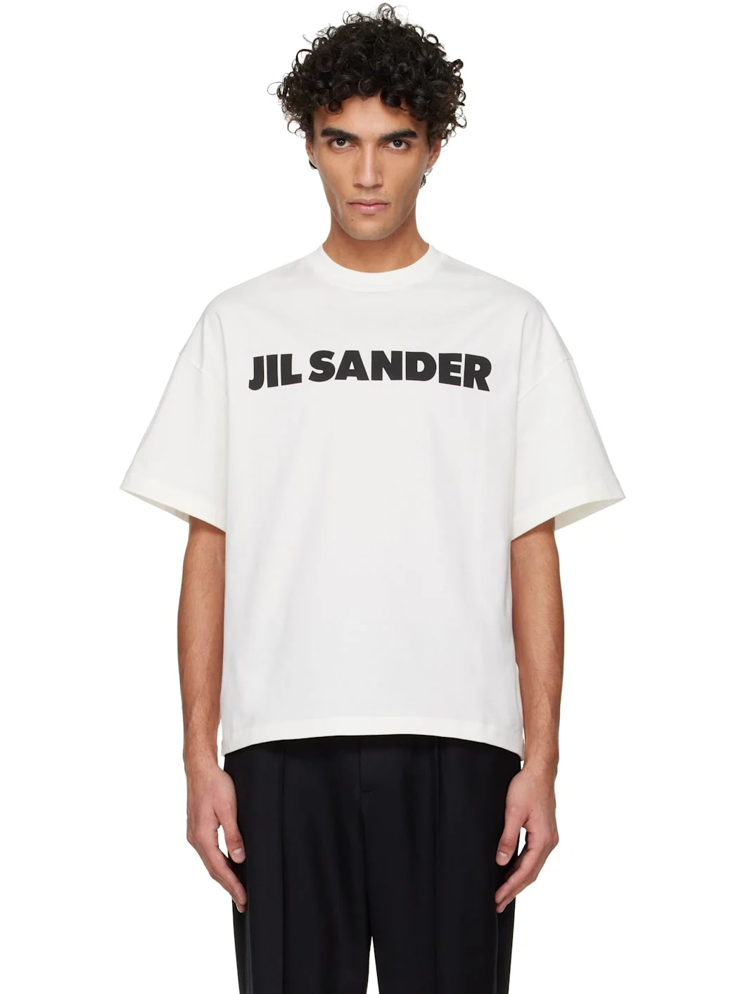 Oversized cotton jersey T-shirt. · Rib-knit crewneck · Logo printed at front · Dropped shoulders Supplier color: Porcelain 100% cotton. Made in Italy 261249M213020