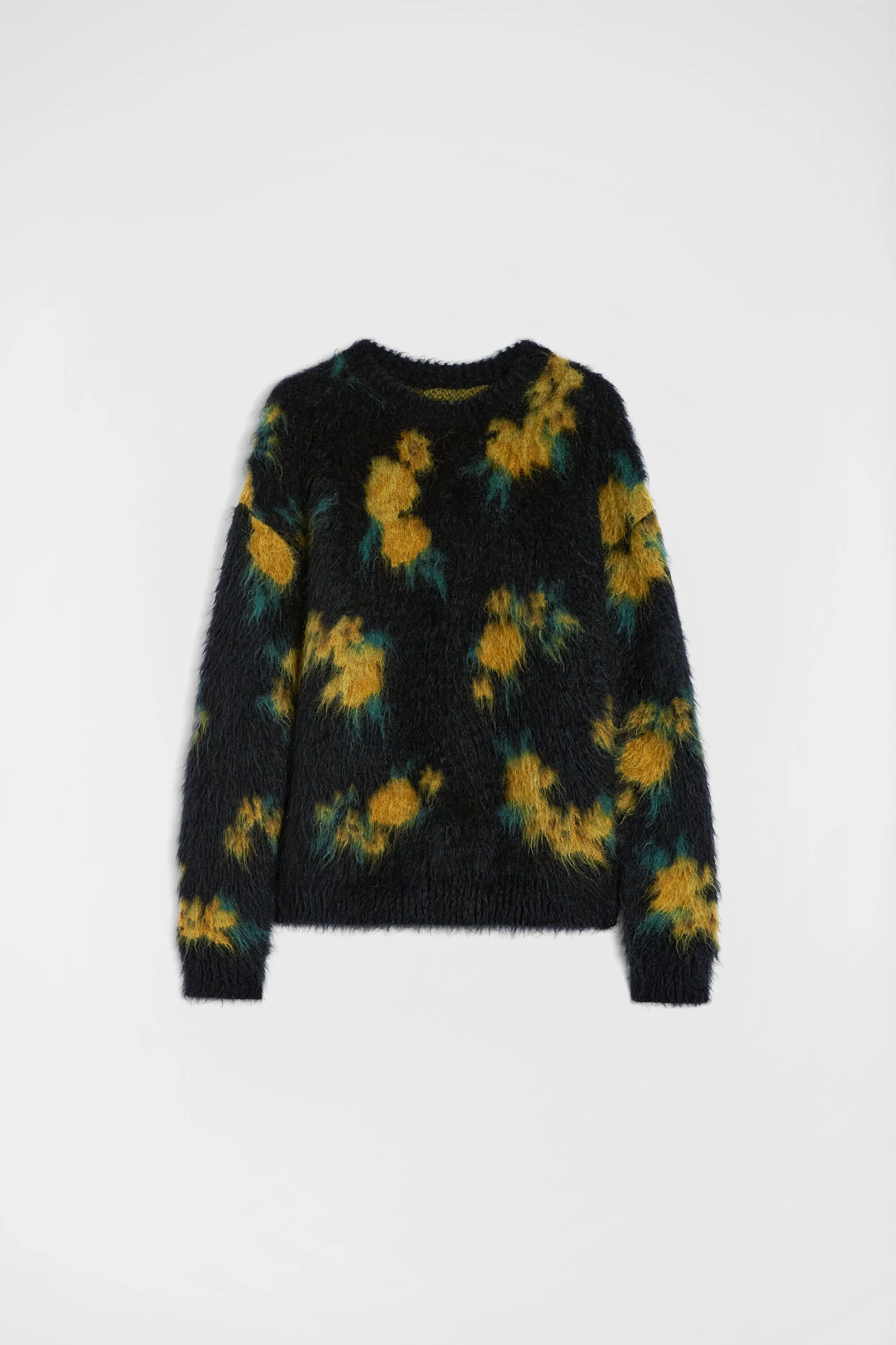 Long-sleeved mohair and silk blend sweater with floral jacquard Details - oversized fit - dropped shoulders - ribbed neck, hem and cuffs - mohair and silk blend floral jacquard - 57% mohair 27% silk 13% polyamide-nylon 2% wool 1% elastane-spandex - made in Italy - StyleID: J22GP0265J14785073 Care - dry clean only - iron with care Fit - model is 187cm/6'1" and is wearing a size 48 IT - Please note that the physical label of the item will show the Italian size