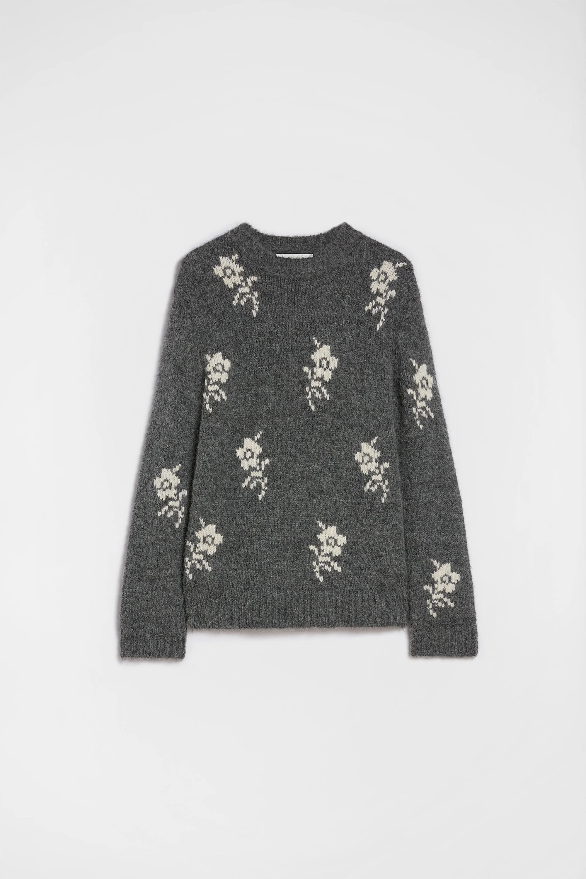 Long-sleeved alpaca and virgin wool blend sweater with floral intarsia Details - regular fit - slightly dropped shoulders - ribbed neck, hem and cuffs - alpaca and virgin wool blend knit with floral intarsia - 81% alpaca 16% virgin wool 3% polyamide-nylon - made in Italy - StyleID: J22GP0259J14786082 Care - dry clean only - iron with care Fit - model is 187cm/6'1" and is wearing a size 48 IT - Please note that the physical label of the item will show the Italian size