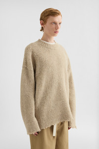 Long-sleeved brushed wool sweater with frayed hem and cuffs Details - oversized fit - dropped shoulders - brushed Shetland knit wool - 100% wool - made in Italy - StyleID: J47GP0197J14792218 Care - dry clean only - iron with care Fit - model is 187cm/6'1" and is wearing a size 48 IT - Please note that the physical label of the item will show the Italian size