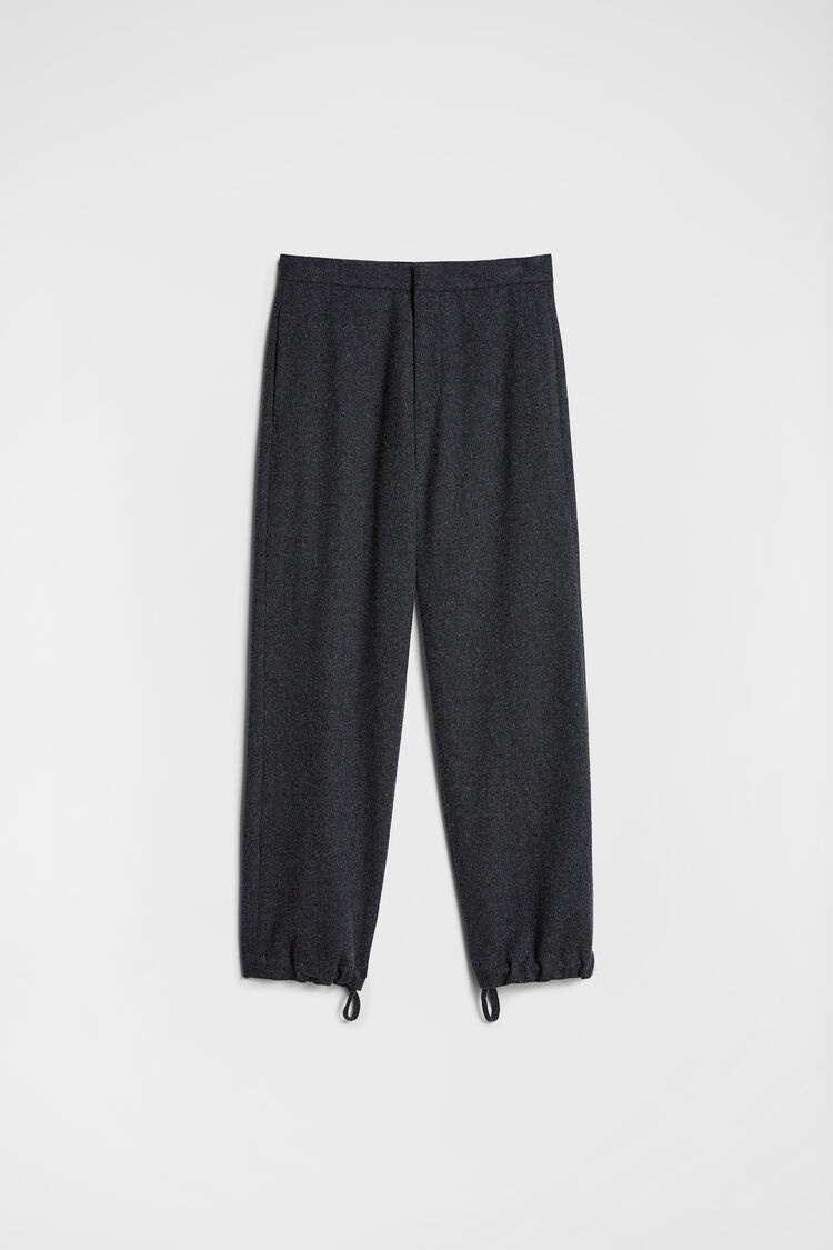 Tapered-leg felted wool flannel trousers with Jil Sander+ logo printed on back Details - relaxed fit and cropped tapered leg - slightly dropped crotch and regular waist - elasticated waistband with zip fly and hook closure - side-seam pockets and back welt pockets - Jil Sander+ logo printed on back label - drawstring hem - viscose pocket lining - felted wool flannel - 100% virgin wool - made in Italy - StyleID: J47KA0288J40182029 Care - dry clean only - iron with care Fit - model is 187cm/6'1" and is wearing a size 46 IT - Please note that the physical label of the item will show the Italian size
