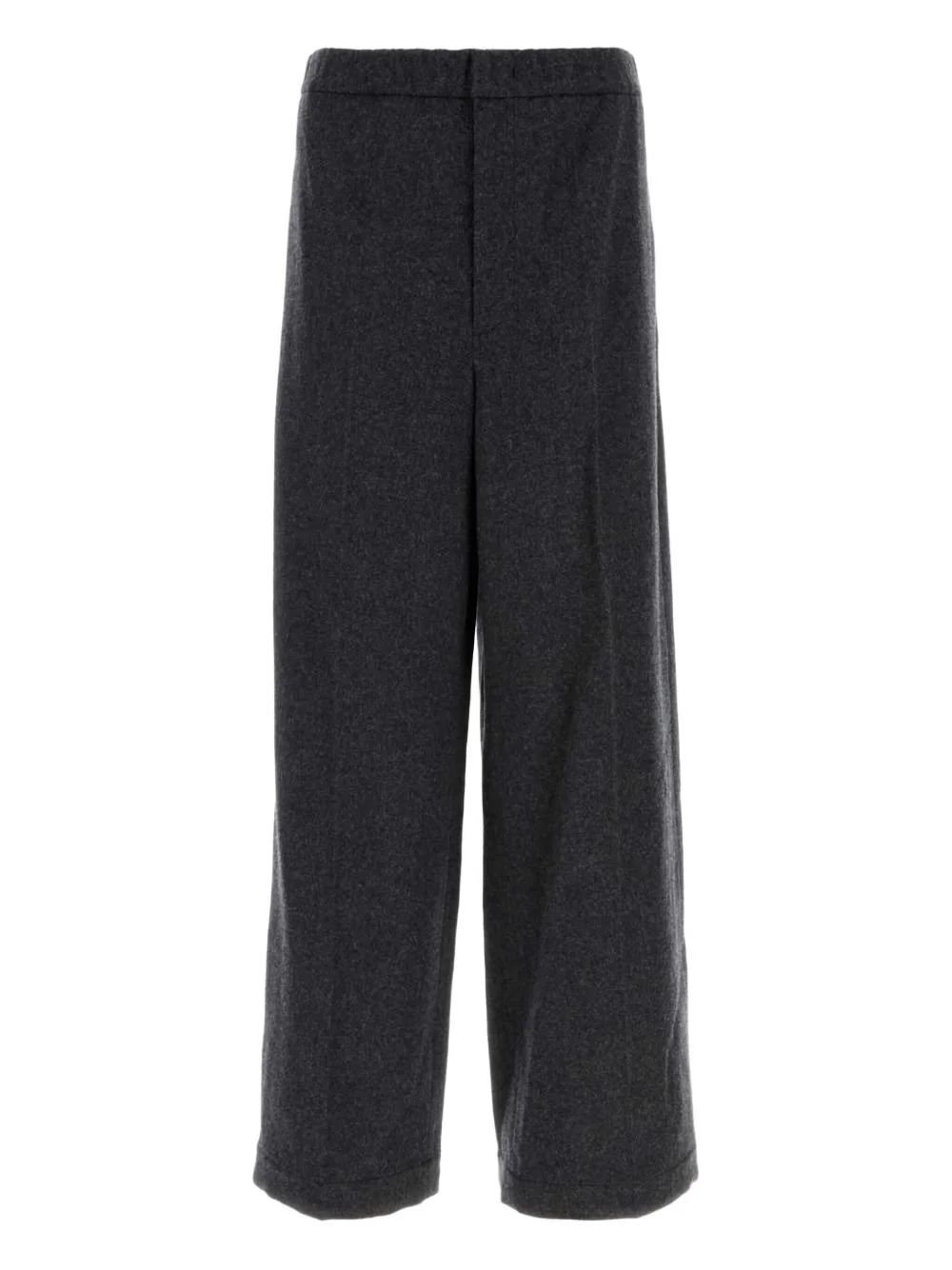 flannel wool trousers Highlights - Charcoal grey - Virgin wool - Wide leg - Rear elasticated waistband - Pressed crease - Concealed front fastening Made in Italy Composition Virgin Wool 100% Washing instructions Read Manufacturer Guidelines