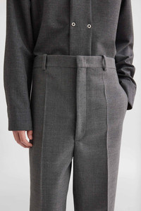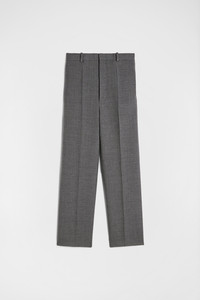 High-waisted double wool gabardine trousers with pressed creases Details - straight fit and leg - slightly low crotch and high waist - zip fly and hook closure - belt loops - side-seam pockets - back welt pockets - viscose half-lining and cotton pocket lining - double splittable wool gabardine - 99% virgin wool 1% silk - made in Italy - StyleID: J21KA0280J40289025 Care - dry clean only - iron with care Fit - model is 187cm/6'1" and is wearing a size 48 IT - Please note that the physical label of the item will show the Italian size