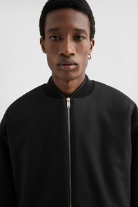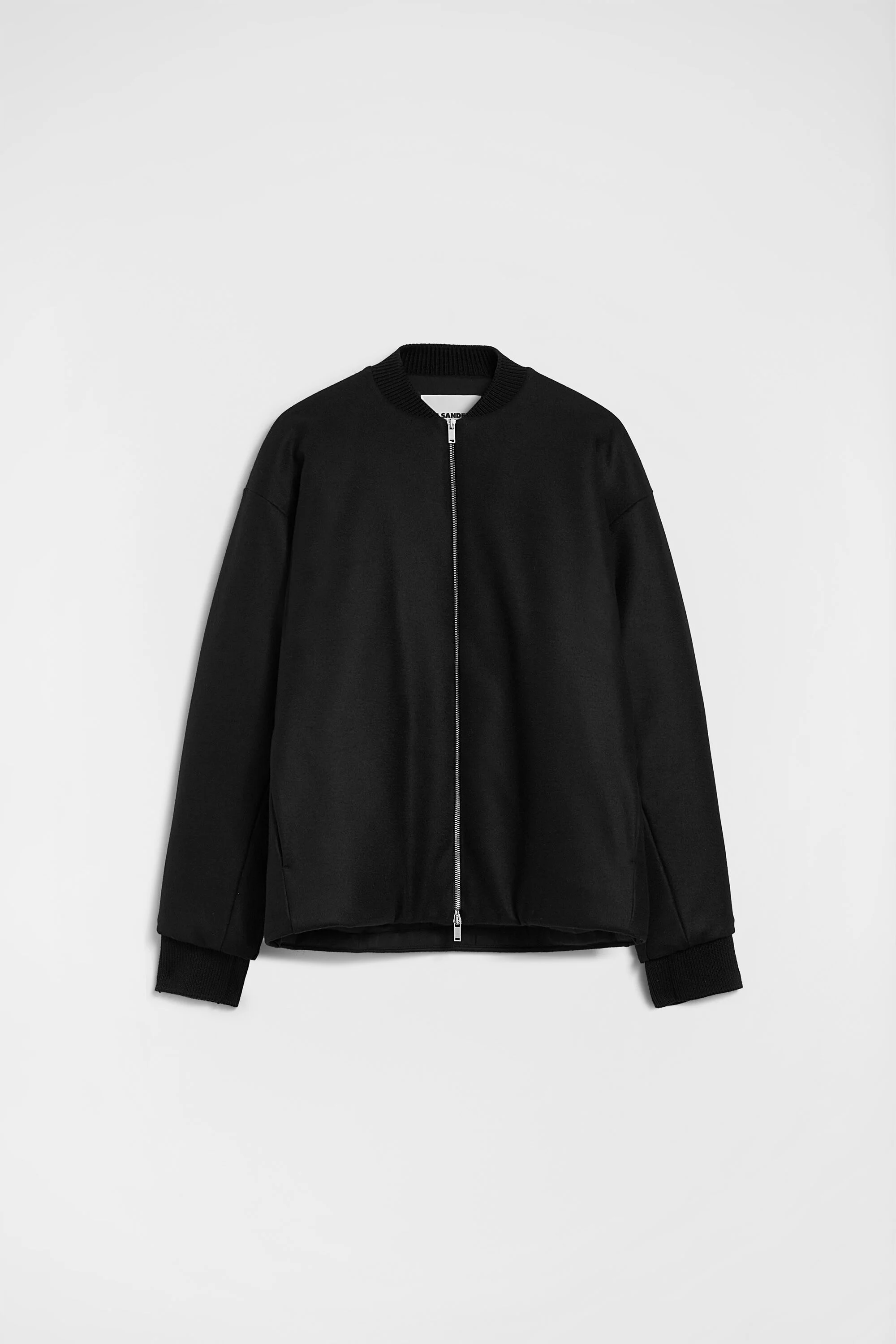 Wool melton padded bomber jacket with ribbed collar and drawstring hem Details - regular fit - dropped shoulders - ribbed bomber jacket collar and ribbed cuffs - front zip closure - viscose lining - wool melton - 100% wool, padding 100% polyester - made in Italy - StyleID: J22BN0277J40045001 Care - dry clean only - iron with care Fit - model is 187cm/6'1" and is wearing a size 48 IT - Please note that the physical label of the item will show the Italian size