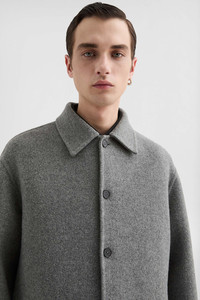 Long-sleeved felted virgin wool outer shirt Details - relaxed fit and boxy shape - flat collar with top button - front button closure - 100% virgin wool - made in Italy - StyleID: J23BN0006J40020034 Care - dry clean only - iron with care Fit - model is 187cm/6'1" and is wearing a size 48 IT - Please note that the physical label of the item will show the Italian size