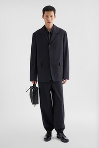 Fully-lined wool poplin jacket with one visible button and two concealed button closure Details - relaxed fit and boxy shape - slightly dropped shoulders - notch lapel with melton undercollar - single-breasted with one visible button and two concealed button closure - two pockets with flaps - sleeves with pressed crease - viscose lining and cotton pocket lining - wool poplin - 100% virgin wool - made in Italy - StyleID: J22BN0281J40249401 Care - dry clean only - iron with care Fit - model is 187cm/6'1" and is wearing a size 48 IT - Please note that the physical label of the item will show the Italian size