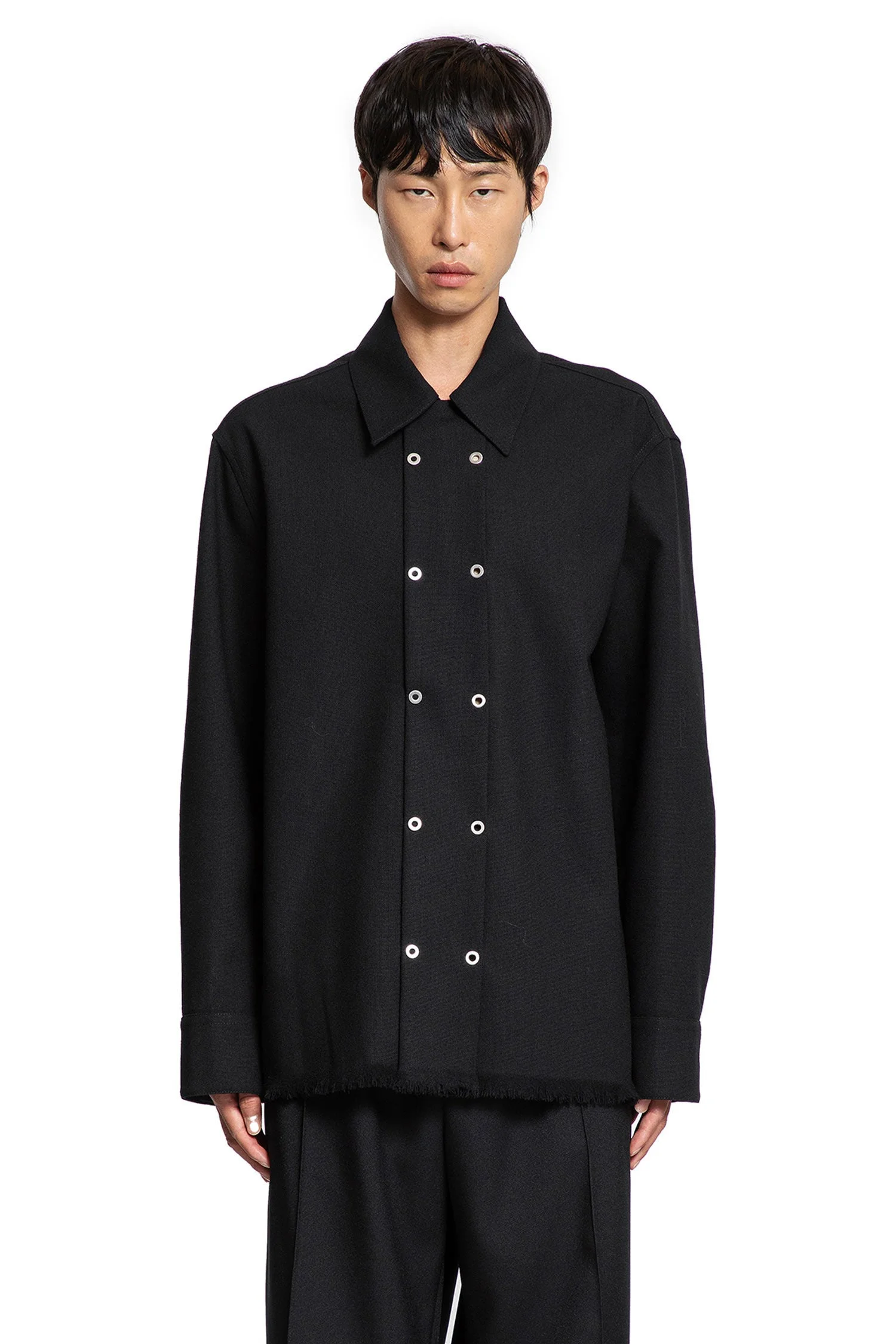 DESCRIPTION - Black - Wool canvas - Classic collar - Press stud eyelet closure - Side pockets - Press stud cuffs - Fringed hem and cuffs - Straight fit DETAILS - Made in: Italy - Composition: 100% Wool - Model code: J21DL0254J41557 001 - Item ID: 9732266328406