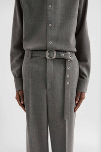 Straight-leg wool canvas trousers with roll-up hems and detachable belt Details - relaxed fit - dropped crotch and regular waist - zip fly and hook closure - detachable belt with metal buckle and metal stud application - side-seam pockets - back welt pockets - viscose half-lining and cotton pocket lining - wool canvas - 100% wool - made in Italy - StyleID: J22KA0230J41557030 Care - dry clean only - iron with care Fit - model is 187cm/6'1" and is wearing a size 46 IT - Please note that the physical label of the item will show the Italian size