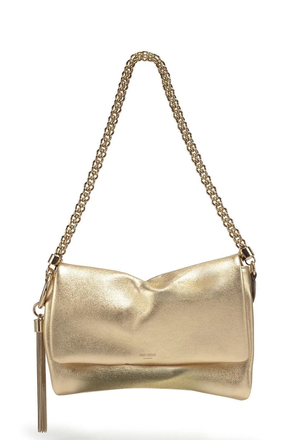 DETAILS AND INSIGHT Jimmy Choo callie flap metallic leather shoulder bag in gold/light gold. Metallic Nappa L24.89 X H 16.00 X W 4.52 Cm Fits Iphone 17 Pro Max Made In Italy Style J000180874-008937